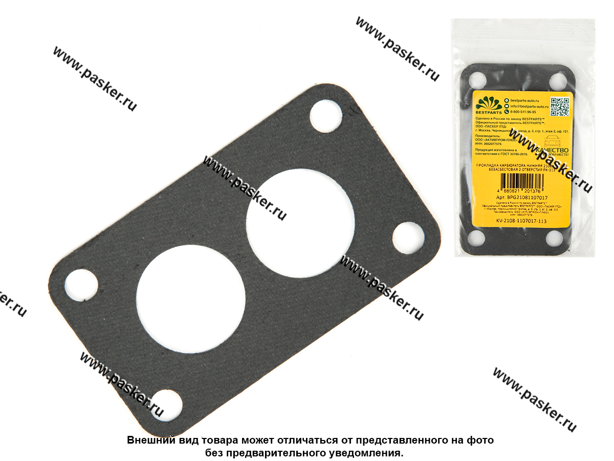 Прокладка карбюратора нижняя 2108-099 ОКА безасбестовая 2 отверстия РК-113 BESTPARTS BPG21081107017