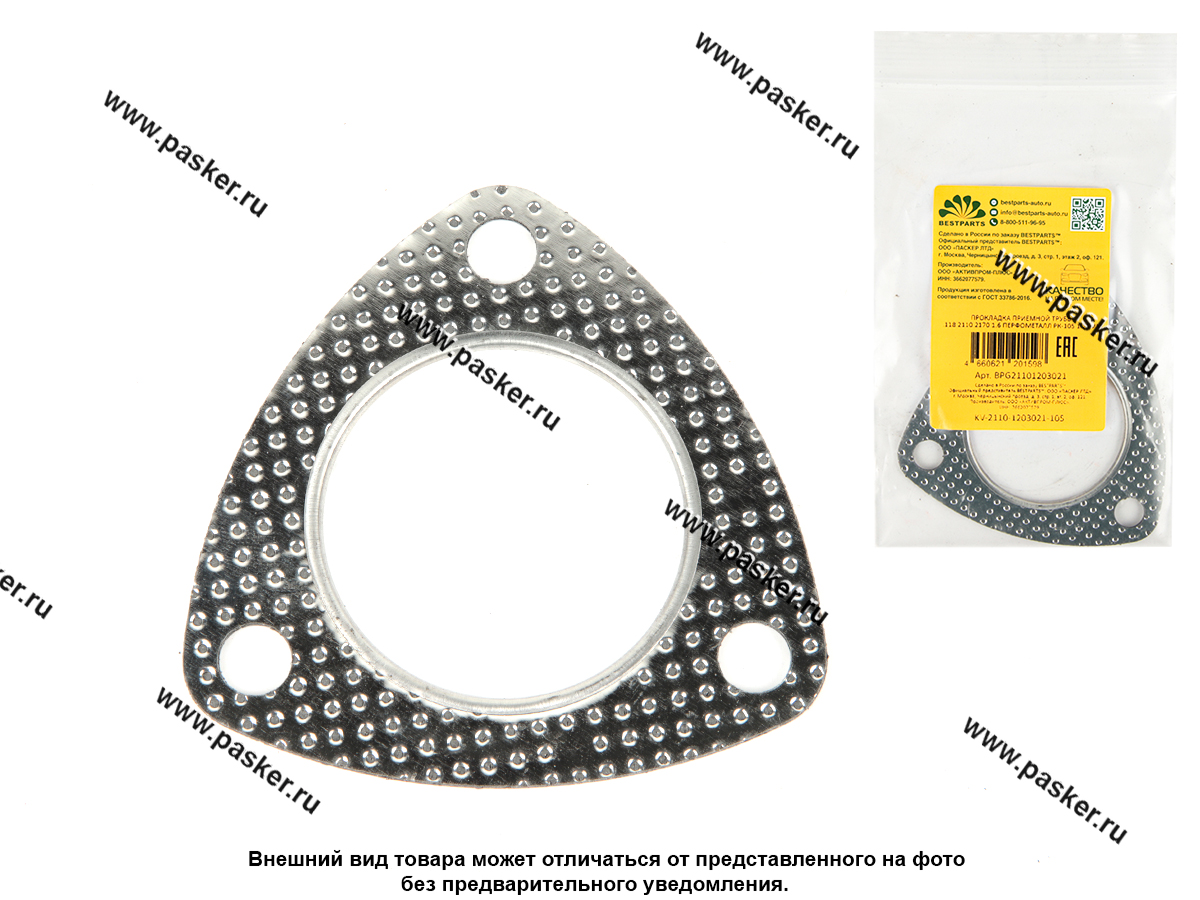 Прокладка приемной трубы 1118 2110 2170 1.6 перфометалл РК-105 1.75мм BESTPARTS BPG21101203021