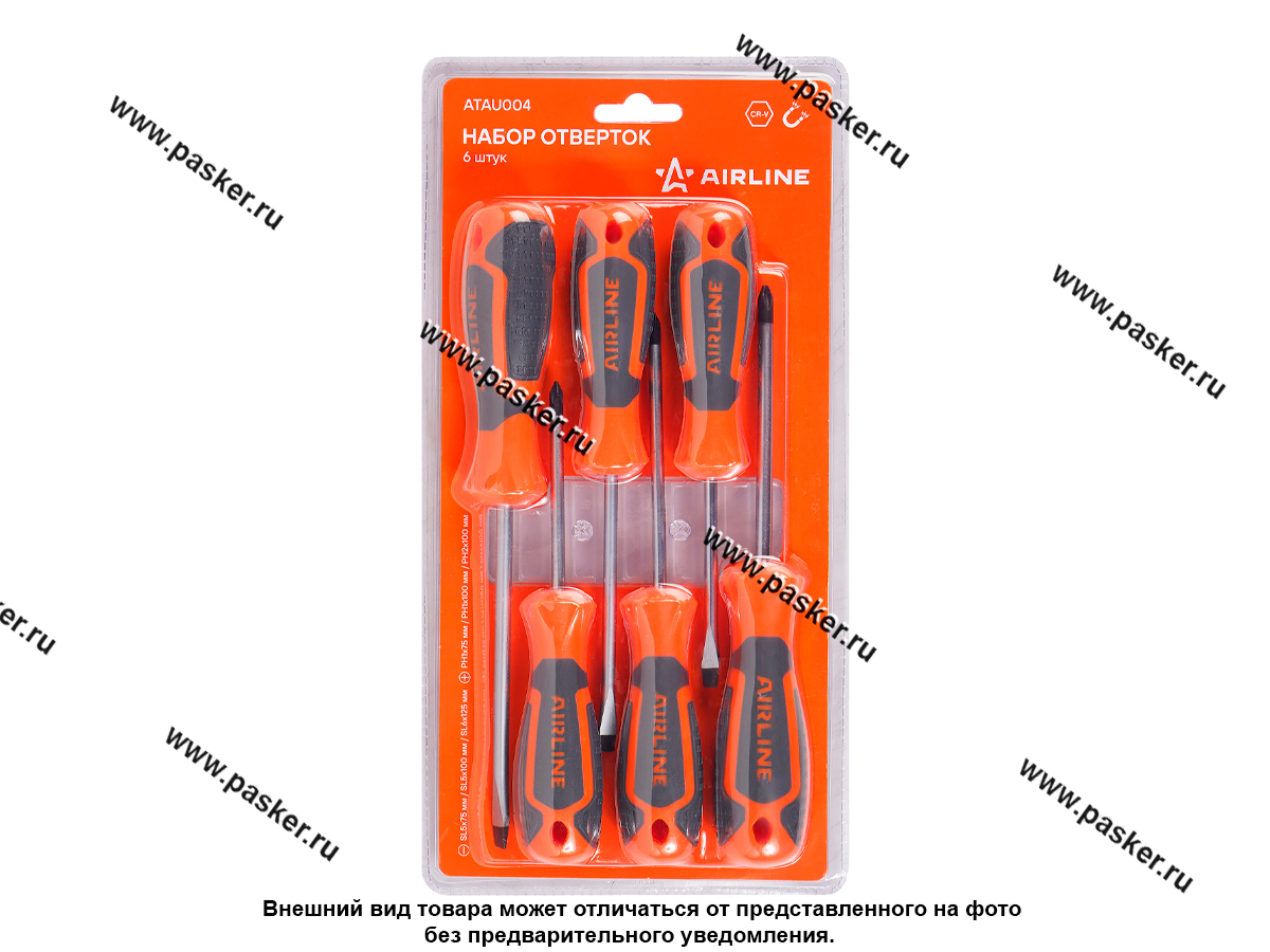 Сочетание твёрдых и мягких элементов рукоятки оптимально распределяет усилие, прилагаемое к инструменту, и предотвращает проскальзывание. Эргономичный дизайн облегчает работу. Отвёртки AIRLINE удобно подвешиваются за специальное отверстие. Лезвие отвёрток AIRLINE изготовлено из хром-ванадиевой стали, жало подвержено индукционной закалке и фосфатировано.