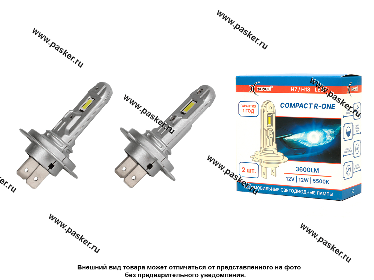 Лампа светодиод 12V H7/H18 Xenite COMPACT R-ONE 3600Lm 55000K 1009723