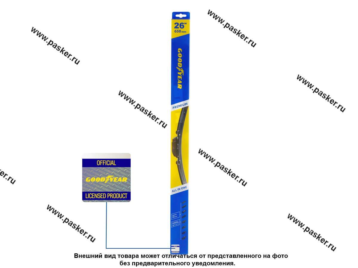 Каждая упаковка защищена от подделок голограммой с уникальным номером. Щетки с этим знаком — оригинальный лицензионный продукт Goodyear с гарантированно высоким качеством.