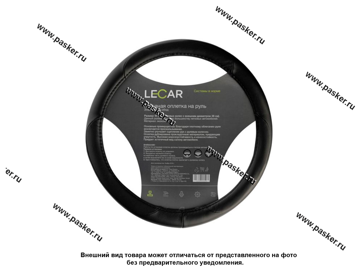 Оплетка на руль LECAR М кожа эластичный обод черная