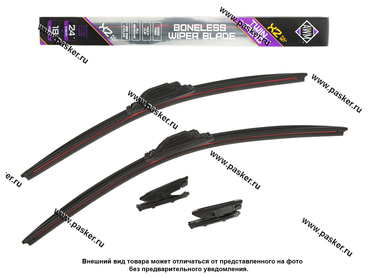 4. Комплект состоит из 2-х БЕСКАРКАСНЫХ щеток стеклоочистителя AWM и обладает всеми