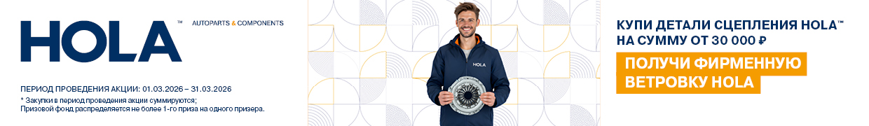 За закупку деталей сцепления бренда HOLA® на сумму от 30 000 руб покупатель получает фирменную ветровку HOLA®;