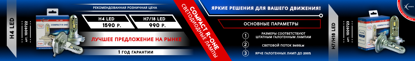 Лампа светодиод 12V H7/H18 Xenite COMPACT R-ONE 3600Lm 55000K 1009723